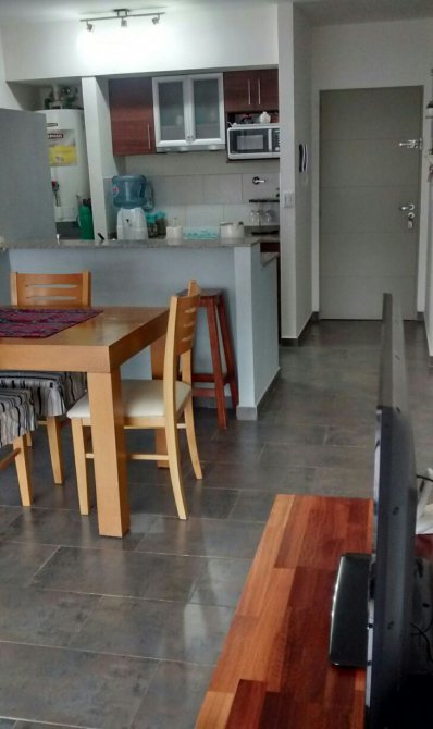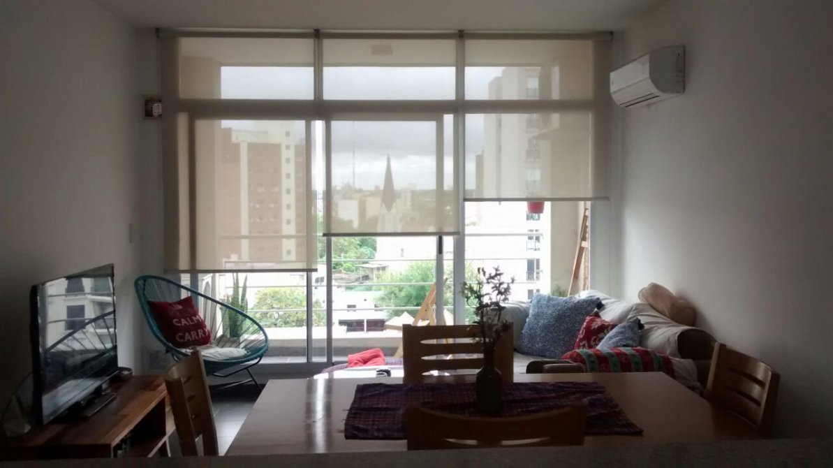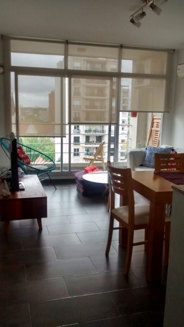 CONSTA DE LIVING COMEDOR CON BALCON CORRIDO AMPLIO, CON CORTINAS DE BLACK OUT, BARRA DESAYUNADORA, SECTOR DE COCINA Y LAVADERO CON ALACENA Y BAJO MESADA, APARATO DE COCINA Y EXTRACTOR DE AIRE. 1 DORMITORIO GRANDE, CON AMPLIO PLACARD DE TECHO A PISO, CON SUS INTERIORES. EL DORMITORIO TAMBIEN TIENE CORTINAS DE BLACK OUT ; ES UN AMBIENTE AMPLIO QUE PUEDE DIVIDIRSE, UN BAÑO COMPLETO. CON BAÑERA, CON MAMPARA. PISOS DE PORCELANATO. DETALLES DE CATEGORIA. ANTIGUEDAD 14 AÑOS